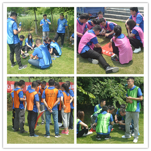 活動(dòng)首先由歡快的“好、很好、非常好、耶”破冰活動(dòng)拉開(kāi)序幕,大家迅速的融入團(tuán)隊(duì),建立信任。緊接著在拓展教練的指導(dǎo)下大家被分成了四組,各組確定隊(duì)長(zhǎng)后經(jīng)過(guò)一番頭腦風(fēng)暴,設(shè)計(jì)好隊(duì)名、LOGO、口號(hào)、對(duì)歌及隊(duì)形并逐一精彩亮相。